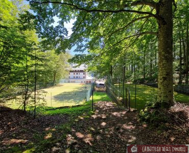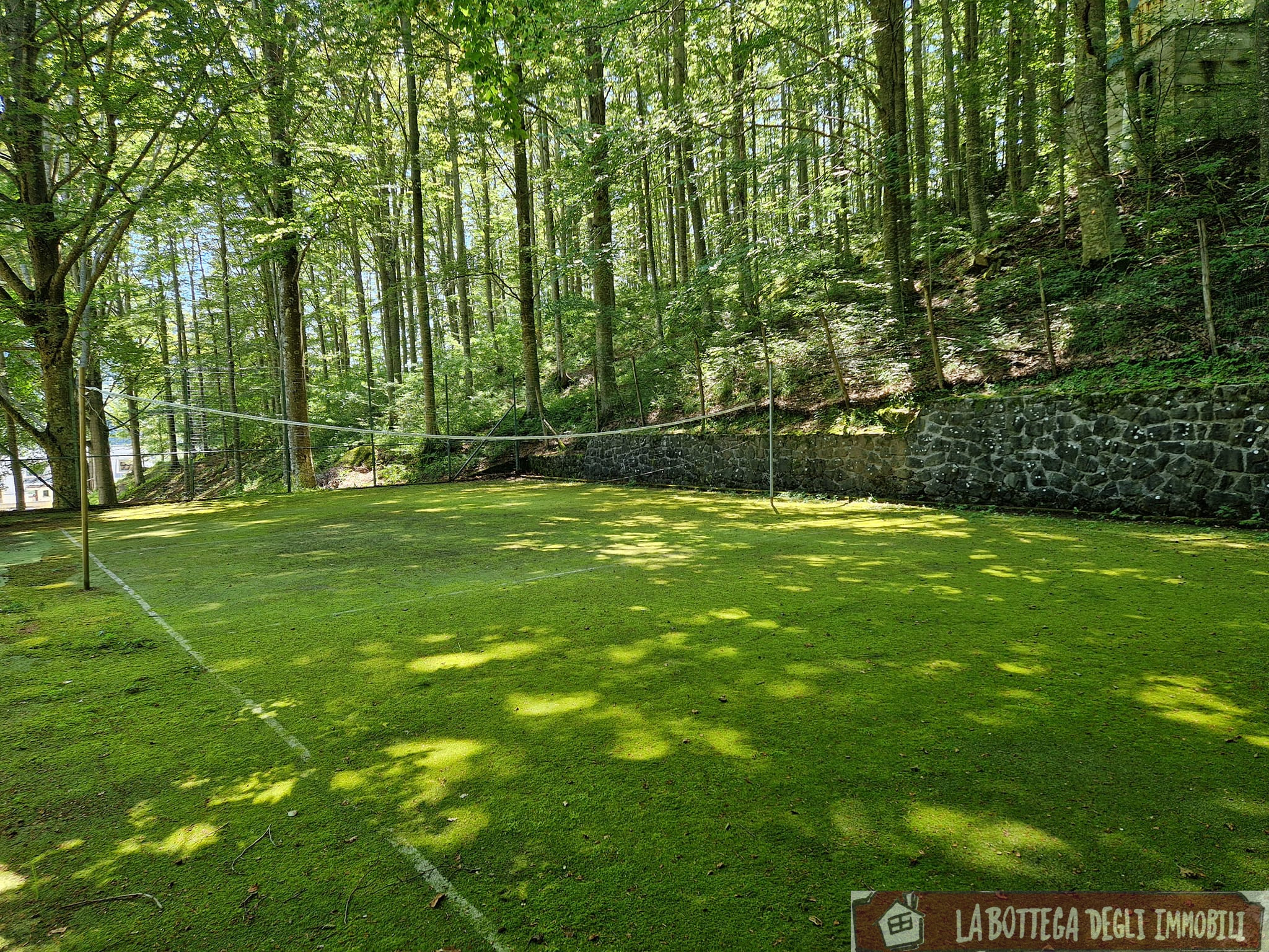 La proprietà a comune dispone di numerosi posti auto, bosco, campo da tennis e campo da pallavolo.