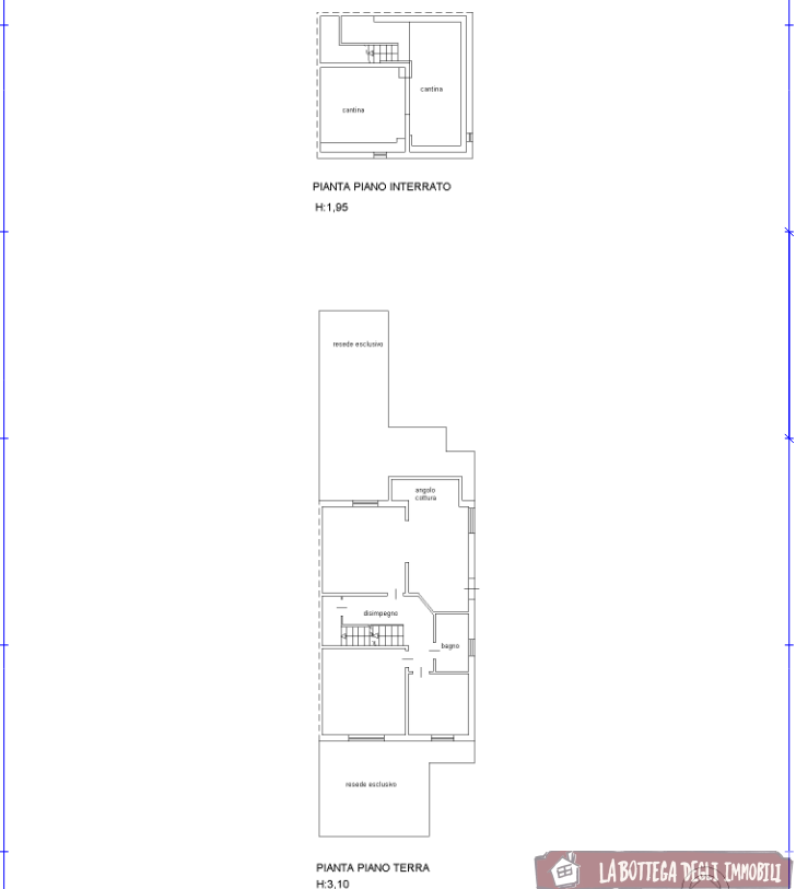 La proprietà dispone di cantina collegata direttamente all’abitazione di circa 30 mq al piano interrato, resede esclusiva frontale di circa 25 mq, resede tergale di circa 20 mq e rimessa di circa 35 mq.